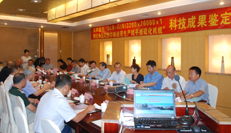 8月18日,由公司自主创新研发,目前国内最大规格的3.2米×16米×1平板硫化机生产线顺利通过由中国石油和化学工业联合会在无锡主持召开的科技成果鉴定会的鉴定。 专家组一致认为该产品设计新颖,结构先进,具有生产效率高,节能明显,智能化、联动化水平高,生产出的超宽超薄输送带填补了国内空白,整体技术达到国际先进水平,部分技术达到国际领先水平,是我国目前国内最大规格的平板硫化机组生产线。