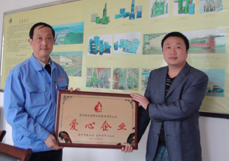 3月28日,公司被益阳市献血办、益阳市中心血站授予“爱心企业”荣誉称号,并与益阳市中心血站签订爱心联盟承诺书,企业承诺全体员工在社会突发公共卫生事件和重大灾害事故等应急医疗救治的用血需求时自愿参与应急献血。 公司组织员工开展无偿献血活动已连续五年,参加献血者200余人,为益阳市中心血站提供优质血源6万多毫升。图为公司工会办公室主任陈立清(左)接过益阳市中心血站站长朱三元(右)为公司颁发的“爱心企业”牌匾。