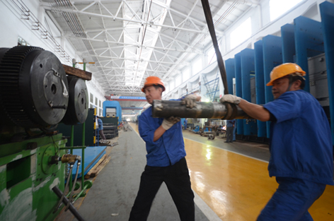 针对今年密炼机、平板硫化机产品订单创建企新高的有利时期,金工车间、数控车间和总装车间组织员工从10月4日起加班生产,以减轻产品加工件和产品组装的压力,确保产品质量和交货期。图为总装车间员工正在组装即将发货的密炼机。