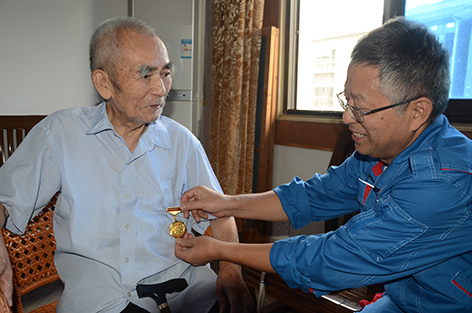 姚副总经理在送上慰问金的同时,还亲手给林老配戴抗战胜利70周年纪念章。