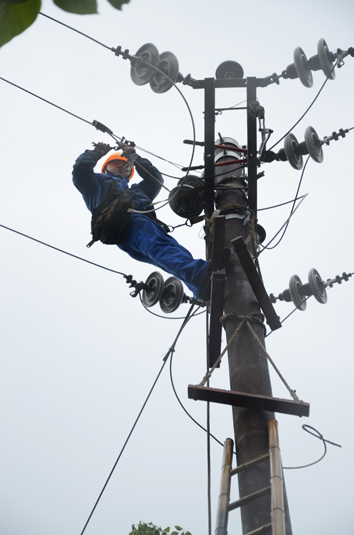 4月18日下午3时,一场持续近40分钟的夹带冰雹的狂风暴雨突袭益阳,致使公司高压线路中断,生产区停产,家属区停电。 面对突如其来的灾情,公司生产经营办的10余名检修人员,顶风冒雨上山排查被损线路,经过二天一夜的连续排查与抢修,终于在19日下午5时恢复生产区供电,20日下午2时恢复家属区通电。图为检修人员抢修被大树压断的家属区高压线路。