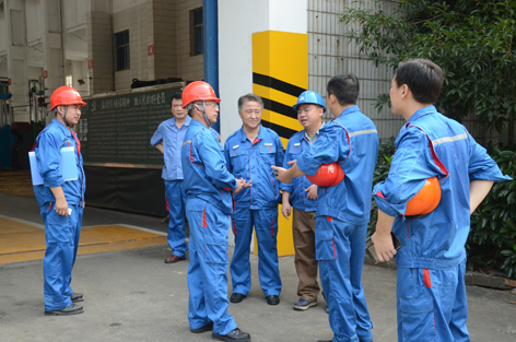 生产经营办的维修员工,通过采取从新区调换被烧坏的变压器,再把备用变压器安装到新区的最佳办法,在酷暑高温下连续奋战7个多小时,终于抢修成功,实现当天下午3点20分恢复供电,确保了第二天的正常生产。上图为抢修人员正在更换被烧怀的变压器;下图为公司领导与生产经营办负责人研究抢修方案。