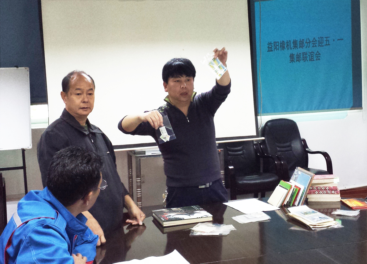 4月25日,公司集邮协会邀请益阳市集邮协会联合举办了迎“五一”联谊会。集邮爱好者们欢聚一堂探讨邮品,交流集邮的基本知识和邮品交易技巧。丰富了广大员工的文娱生活,增加了集邮知识,增进了员工之间的友谊。图为集邮爱好者在展示邮品。