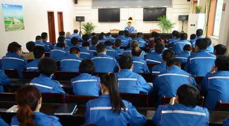 近期,公司领导把党的群众路线教育实践活动与抓生产经营同步推进,切实做到两手抓、两不误、两促进,领导班子成员在定期集中学习同时,还下基层到各自联系点的车间班组上党课。上图为公司董事长兼总经理张俊山正在为总装车间党员上党课;下图为党委书记潘时杰为部室管理人员上党课。