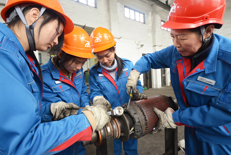 “三八”前夕,公司生产经营办电机维修班被益阳市总工会授予“芙蓉标兵岗”荣誉称号。该班组共四人为青一色的“娘子军”,她们在许凤艳班长的带领下,立足本职,勤学苦练,技术过硬,出色地完成了机床等设备配备的电机维修和技改工作,在平凡的岗位上彰显了巾帼风采。图为该班组四名女工正在维修电机。