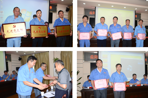 会上,姚宏建同志宣读党委的表彰决定。表彰在2012——2013年度取得显著成绩的益神支部、金工车间支部和机关五支部3个先进集体;刘建平、江淑良、刘建国、张益芝、胡辉、谢子俊、贺瑞朋、贺雪飞、盛丽、郭解放、陈琦、夏连昌、李光林、吴剑铭、郭汉清、李乘风、郭鹏涛、刘鄂虎、邓庆余、周劲松、于宏伟、陈跃辉、易森林、刘波、严伟、阎长俊、肖斌、金树刚、郭铁强、袁毕华、郭松林、李文、刘浩、何国清、孙振和龙飞等36名优秀共产党员;黄战军与吴开榜2位优秀党务工作者。贺军强同志宣读新批准的预备党员名单和预备党员转为正式党员名单;隆振前同志作为领誓人带领7名新党员和与会的全体党员面对党旗举起右手,庄严宣誓。