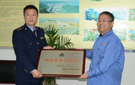 4月25日,益阳市工商行政管理局的领导来到公司,把“湖南省著名商标”牌匾和证书送到公司副总经理姚宏建手中,这是公司开展名牌品牌战略,在商标知识产权上获得的又一成果,为公司的品牌建设打下了良好基础。