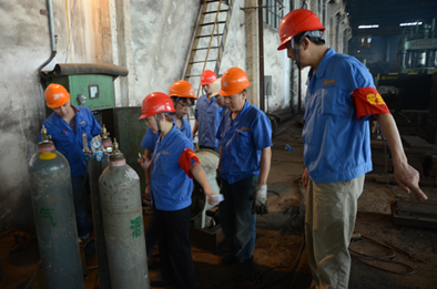 今年下半年以来,公司持续改进向纵深推进,专门成立“6S” 管理推进小组,加大了对各车间现场环境考核和安全生产检查的力度,推进小组人员每天在现场巡查并逐项打分,对安全隐患就地整改。图为公司6S推进小组成员正在铆焊车间查处一安全隐患。