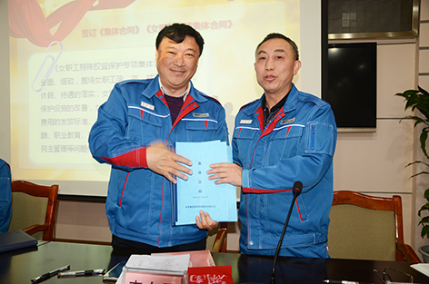 3月23日,公司召开七届一次职工代表大会,在公司报告及职工代表提案讨论意见说明和领导班子成员民主测评后。公司工会主席金进尧与公司董事长兼总经理、党委书记李东平分别签订《集体合同》与《女职工特殊权益保护专项集体合同》。以构建公司与员工和谐稳定的劳动关系,维护劳动关系双方的合法权益,切实保护女员工的合法权益。