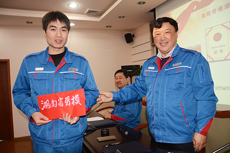 3月23日,在公司召开的七届一次职工代表大会上,公司董事长兼总经理、党委书记李东平代表公司,专门对近年来先后荣获中央企业青年岗位能手、湖南省最美青工和2015年度湖南省劳动模范的青年员工文建海进行了特殊奖励表彰。用以激发全公司员工学技术、练本事,爱岗敬业,争当技术能手。