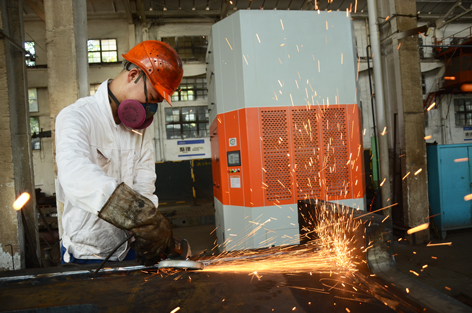 为确保员工职业健康安全,公司购买价值共42万元的上吸式自循环净化一体机两套设备安放在铆焊焊接工作台旁,以净化焊接现场空气、防尘,防止特殊工种员工尘肺病的发生。