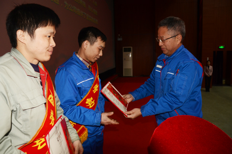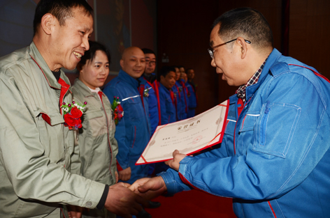 大会由公司工会主席、总工程师金进尧主持。公司副总经理、纪委书记刘孟辉宣读表彰决定和名单。随后,在欢快的乐曲声中,公司领导依次为获得表彰的2017年度先进集体、先进班组以及劳模、标兵、先进个人、青年突击手颁发证书和奖金。