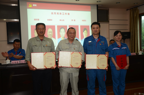 大会在庄严的《国歌》声中开幕。公司副总经理隆振前宣读表彰决定。随后,公司领导先后对3个先进党支部、5名优秀党务工作者和18名优秀党员颁发荣誉证书。