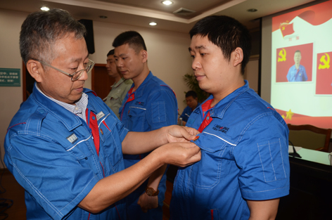 接着,玄书鹏同志宣读新批准的预备党员名单与预备党员转为正式党员名单。公司党委委员、常务副总经理姚宏建为三位新党员贺峰、刘强、张敏佩戴党徽。与会的新党员和老党员在玄书鹏同志的带领下,面向党旗光荣宣誓和重温入党誓言。