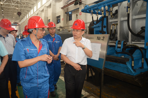 公司纪委书记兼副总经理刘孟辉、副总经理隆振前、党委副书记玄书鹏、工会主席兼总工程师金进尧等公司领导热情迎接瞿海一行,并陪同瞿海—行先后参观了已近半个世纪的老厂区和高科园新基地厂区,隆振前在陪同翟海书记的参观的同时,向瞿海书记详细汇报公司生产经营等有关情况以及整体搬迁工作等事宜。