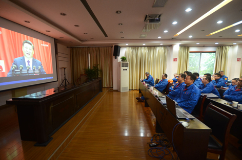 公司领导与全体干部员工一道,仔细听取了习近平总书记在开幕式上作题为《不忘初心,牢记使命,高举中国特色社会主义伟大旗帜,决胜全面建成小康社会,夺取新时代中国特色社会主义伟大胜利,为实现中华民族伟大复兴的中国梦不懈奋斗》的报告。