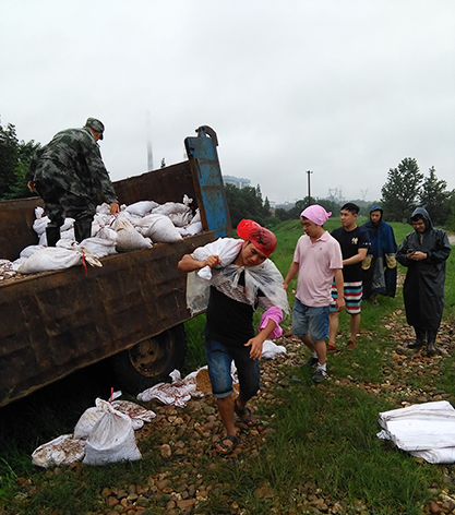 从7月3日晚起,湘中以北的益阳遭遇连续多日的暴雨袭击,资江河超警戒水位,4日晚资江洪峰到达益阳,多地受灾严重。为切实做好防汛工作,益阳橡机牢固树立“防大汛,抗大灾”的思想,在汛期到来之前,该公司就成立了以防汛工作领导小组,并实行24小时值班值守,30名应急队员24小时不关机随时待命。为使应急队员孰练防汛知识和技能,应急分队在6月份提前开展了为期七天的防汛、消防、拉练、逃生、心肺复苏等应急演练,为应对防汛、防暴、火灾、救援等突发应急事件打下牢靠的基础。