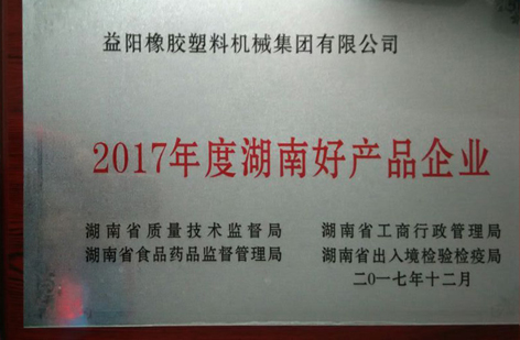 益阳橡机获“2017年度湖南省好产品企业” 荣誉称号