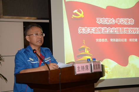 最后,姚宏建同志代表公司党委作了题为《不忘初心,牢记使命,矢志不渝推进企业提质增效转型升级》党委工作报告。他说,在中国共产党诞辰97周年之际,我们齐聚一堂,隆重召开公司201-2018年度先进党支部、优秀党务工作者和优秀共产党员表彰大会,以此激励各党支部、广大党员坚定信念、牢记宗旨,更好地发挥战斗堡垒作用和先锋模范作用,更好地发挥公司党委领导核心和政治核心,带领广大干部职工为益阳橡机发展而努力奋斗。过去的一年,在装备公司党委的坚强领导下,公司党委坚定不移的贯彻落实加强国有企业党建的新要求、新目标,坚定不移的宣贯落实党的十九大会议精神,以“坚持党对一切工作的领导”为指导思想,不断提升企业党建工作水平,持续改善生产运营质量。在这里,我受公司党委委托,向受表彰的先进集体和个人表示热烈的祝贺,向全体党员致以节日的问候和良好祝愿!姚总还就一年来的党建工作进行了回顾,对下一步工作进行了部署。