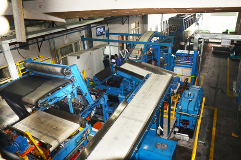 在红阳公司的车间,记者看到,这条已经正常运行生产的一步式智能炼胶生产线坐落在红阳公司炼胶车间的最右侧。与原有三条旧生产线不同,这条自动化的生产线上,操作人员更少,生产效率更高。在生产线自动滤胶机旁,一名操作人员通过显示屏,即可监看生产线的运行状况。称重配好的胶料、炭黑、硫磺等原材料,通过皮带源源不断地运输送入串联式上密炼机进行炼胶,经过下密炼机炼制后,自动送到智能化开炼机组反复压片炼胶,再输送入自动滤胶机过滤杂质,经胶片冷却,最终自动连续出片,整个过程高度自动化并一气呵成。对此,该公司生产保障部吴杰文竖起大拇指说:“从实际效果来看,一步式智能炼胶大大优于传统的二步式炼胶,下步我们将用一步式智能炼胶生产线逐步取代和改造原来的三条旧生产线。”