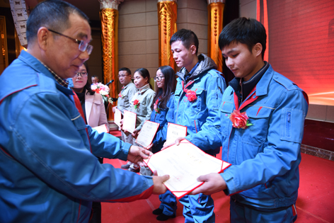 大会由公司工会主席、总工程师金进尧主持。公司副总经理隆振前宣读表彰决定和名单。随后,在欢快的乐曲声中,公司领导依次为获得表彰的2017年度先进集体、先进班组以及劳模、标兵、先进个人、青年突击手颁发证书和奖金。