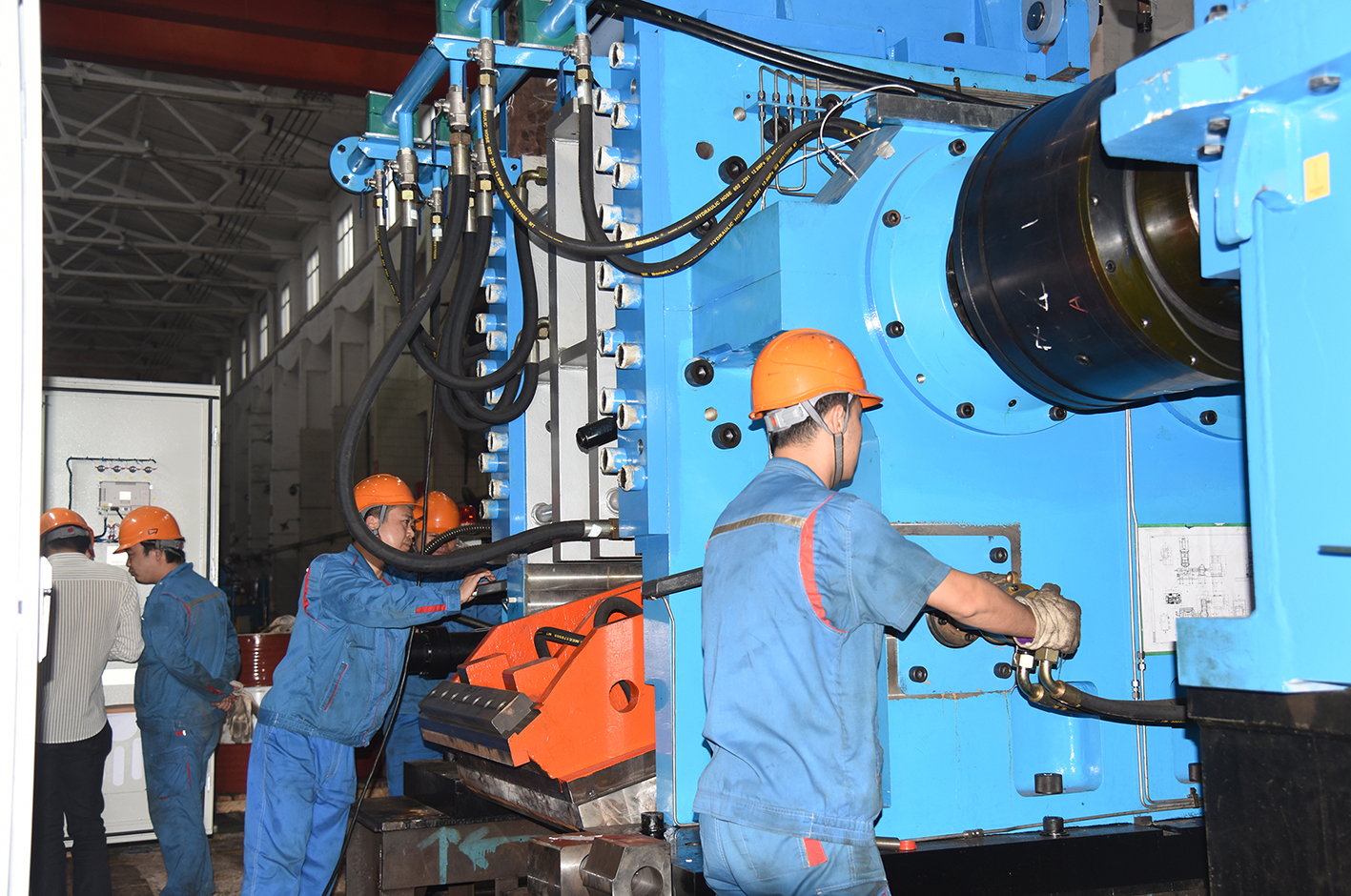 ▲9月28日,益阳橡机自主研发制造的GE420啮合型密炼机成功下线