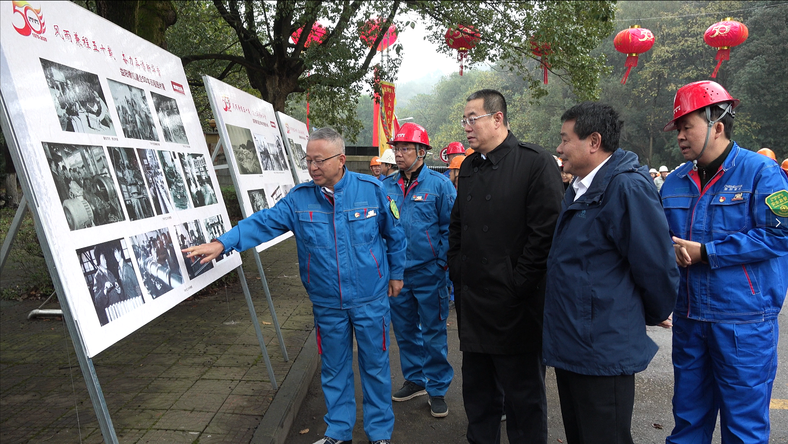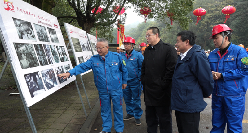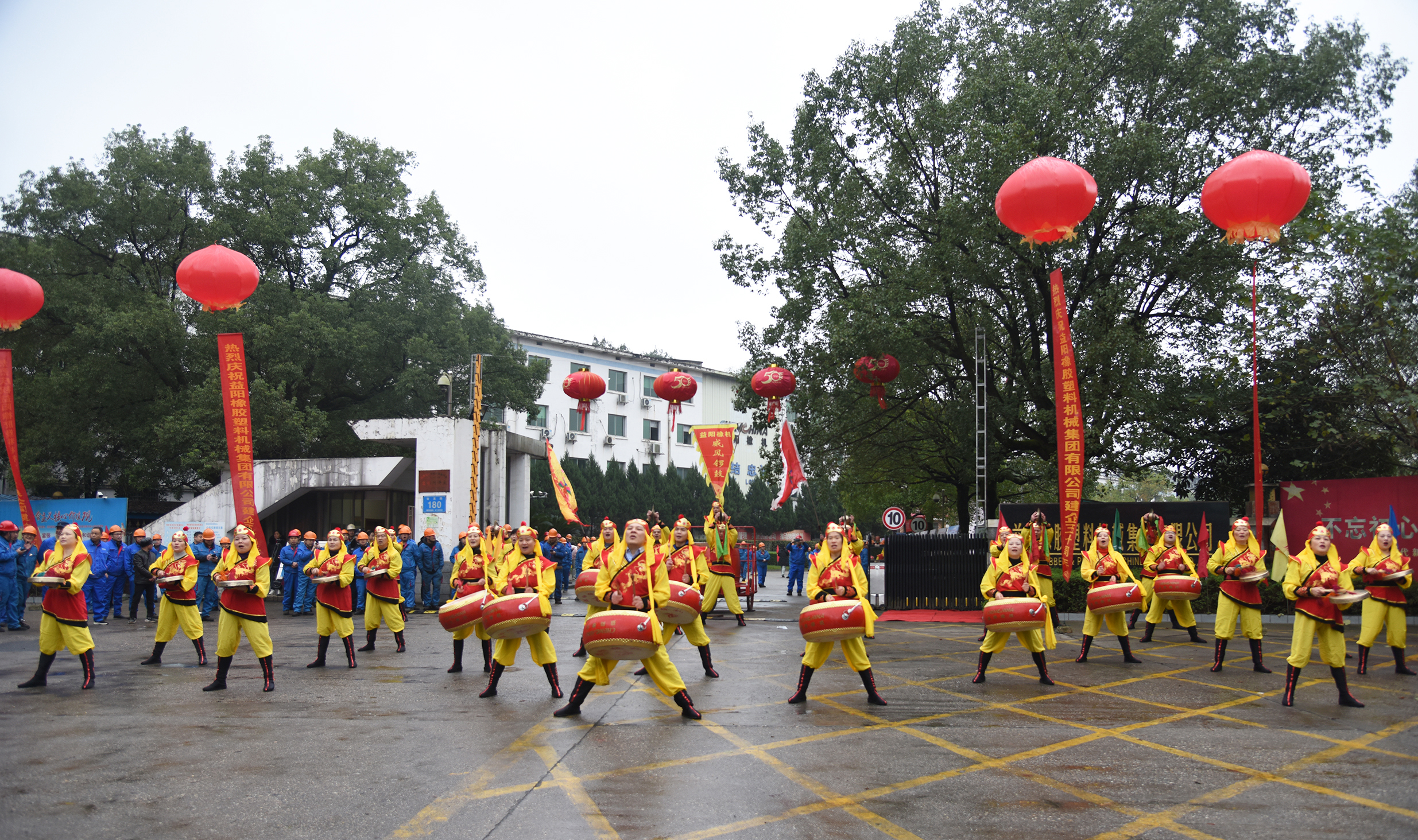 益阳橡机厂区锣鼓喧天、彩旗招展,一片祥和欢乐美好。各位嘉宾及广大员工在建企50周年历程图片展板前观看回味、合影留念,一张张黑白与彩色的精彩照片让大家感受到50年来益阳橡机发展壮大的风雨历程,企业在不断面临新的挑战时,橡机人发扬“团结、忠诚、笃学、创新”的企业精神,顽强拼搏、奋勇前行。