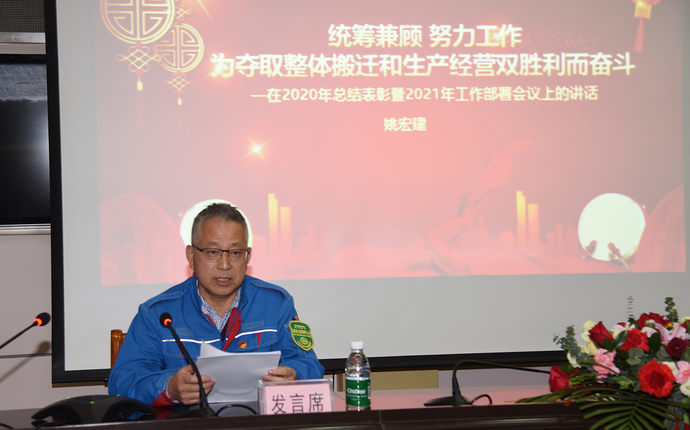 ▲党委书记、董事长、总经理姚宏建作题为《统筹兼顾 努力工作 为夺取整体搬迁和生产经营双胜利而奋斗》报告
