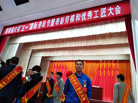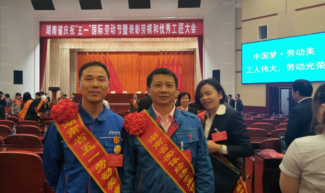 4日28日,华球体育总装车间主机一组组长吴跃武、总装车间副主任欧红道双双进省城长沙,出席湖南省庆祝“五一”囯际劳动节暨表彰劳模和优秀工匠大会,吴跃武被授予省“五一”劳动奖章称号、欧红道荣获省实体企业100名优秀班组长称号。