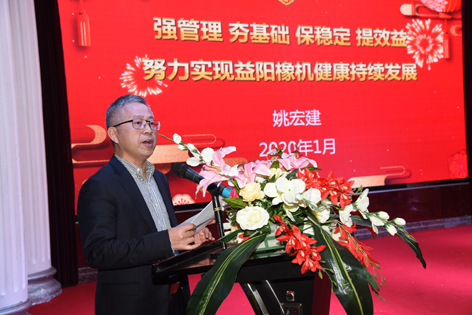 元月17日,公司在世纪豪庭召开2019年度总结表彰暨2020年生产经营动员大会,主要任务是传达贯彻中国化工集团有限公司和中国化工装备有限公司年度工作会议精神,认真总结过去一年工作,研究分析当前形势,部署2020年各项工作任务,动员全体员工,坚定信心,再接再厉,为实现公司持续稳定发展而努力奋斗。会上,公司党委书记、董事长、总经理姚宏建作了题为《强管理 夯基础 保稳定 提效益努力实现益阳橡机健康持续发展》的重要报告。