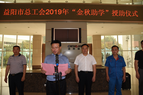 由益阳市总工会举办,公司协办的2019年“金秋助学”助学金发放仪式在益阳橡机高新区厂区举行。市总工会领导与公司总工程师金进尧在仪式现场为43名新入学的困难家庭学生代表发放助学金。