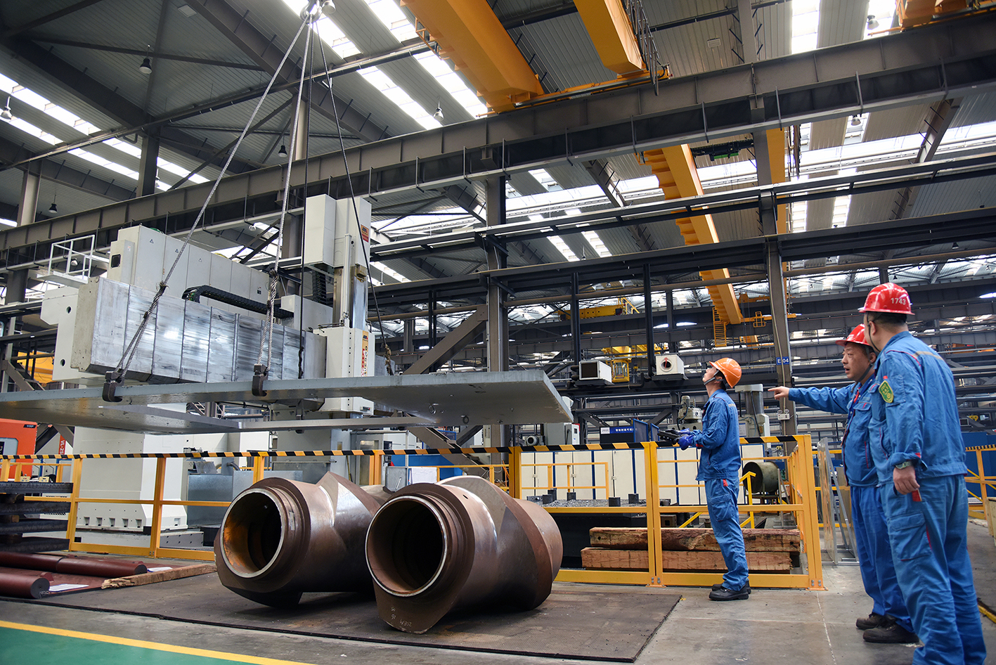 ▲车间安全员洪强、于宏伟对大型工件的吊装进行现场监护
