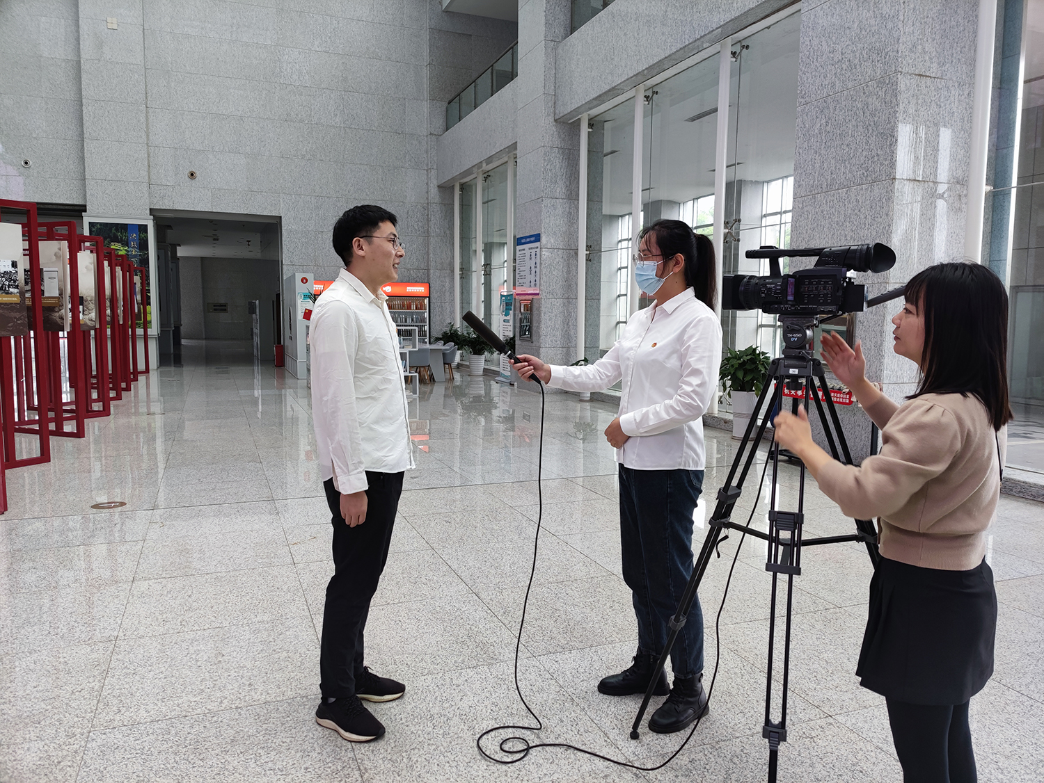 ▲共青团益阳市委、益阳电视台采访益阳橡机机械技术员秦恩臣
