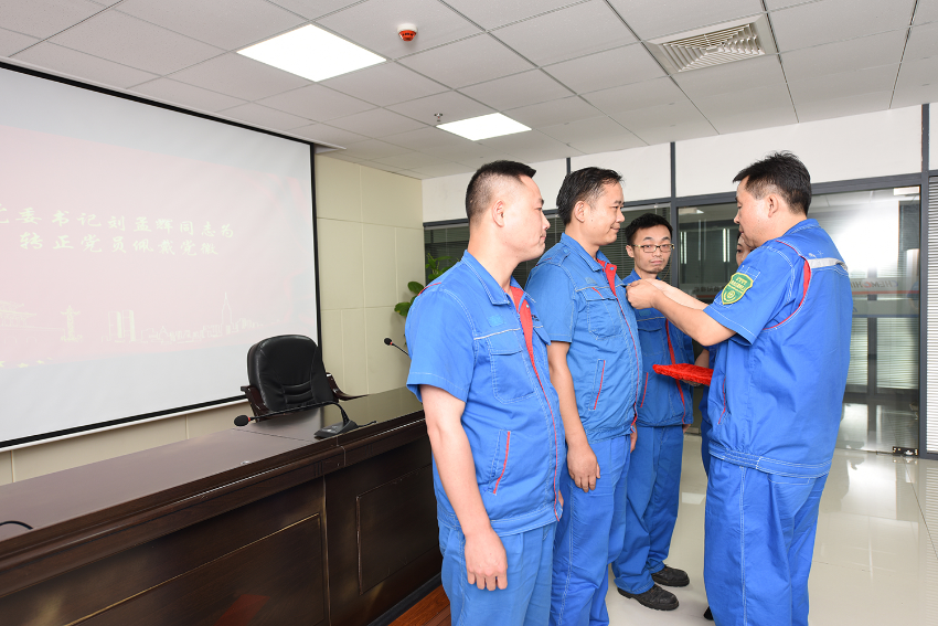 在鲜红的党旗前,党委书记、执行董事、总经理刘孟辉带领预备党员宣誓、正式党员重温入党誓词,用铮铮誓言表达对党的忠诚和为共产主义事业奋斗终身的坚定信念。