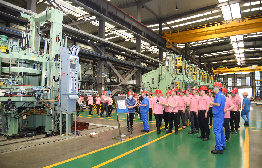 进修班一行来到益阳橡机数字化工厂,深入生产现场了解绿色环保、高效低碳的橡胶机械产品全生产流程。通过现场参观、听取讲解、产品展示、交流讨论,进修班一行对益阳橡机的生产经营情况有了深入的了解,并深刻感受到益阳橡机数字化、智能化水平和在行业内的发展前景。