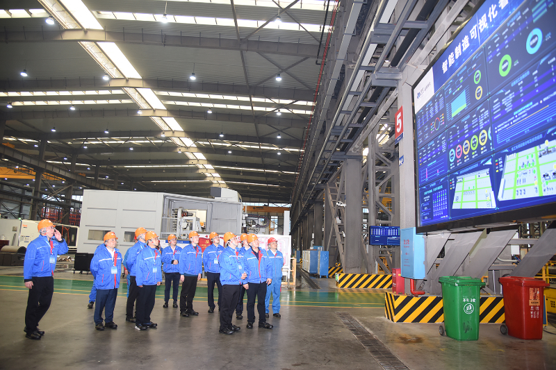 调研组一行参观了益阳橡机数字化工厂生产车间,听取了益阳橡机公司基本情况、生产经营、“一企一策”运营改善计划、产品研发、业务协同、数字化建设、人力资源管理、财务管控和未来发展战略等内容的汇报,并与企业领导班子成员及部分中层干部进行座谈。