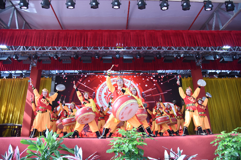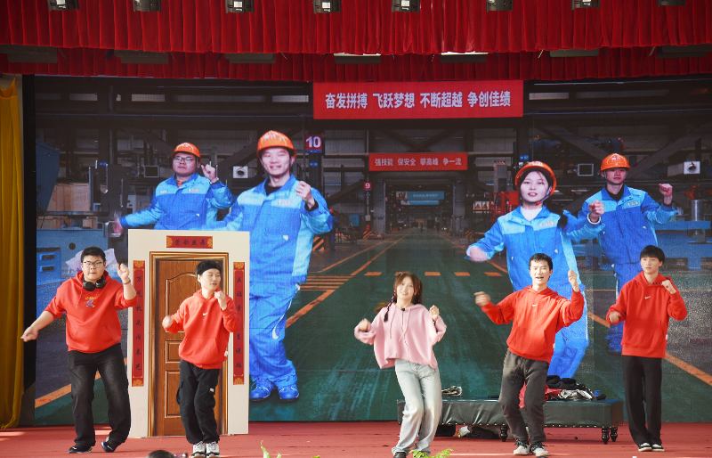 战鼓雷,号角响,精彩表演在隆隆的战鼓声中拉开帷幕。伴着璀璨的灯光、精彩的舞蹈、激扬的乐声,现场氛围瞬间沸腾起来。台上表演员工精神抖擞、意气风发,激昂旋律呈现了公司员工奋发向上的精神。
