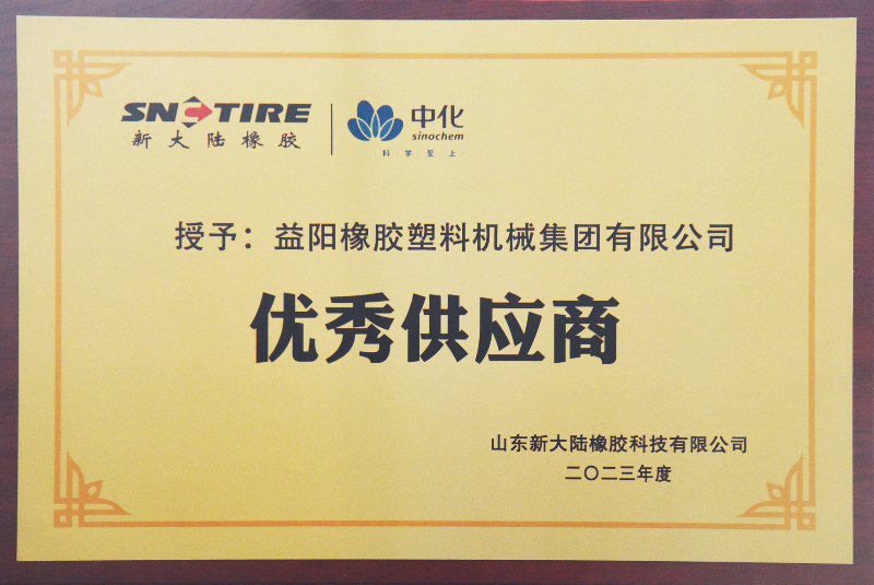 2月29日,益阳橡机获得山东新大陆橡胶科技有限公司授予的“优秀供应商”称号,该荣誉的获得是客户对益阳橡机产品质量和优质服务给予的高度认可。