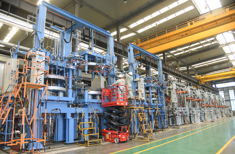 ▲图为公司生产的65吋液压硫化机顺利通过国内客户的在线试车验收,成功发货。该批硫化机采用全伺服液压控制系统,整体按需输出,可实现单模自动化生产。