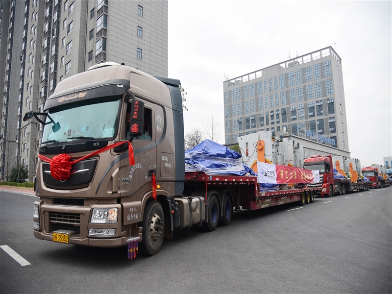 2月5日(正月初八),在欢快的锣鼓声中,益阳橡机生产的15台48吋机液混合式硫化机顺利通过国内客户的试车验收,成功发货,点燃了全球橡机销售市场的开门红!满载硫化机包装箱的12辆货车陆续开出中化橡机益阳基地,驶向江苏。这是益阳橡机新春上班第一天发运的大规模硫化机产品项目设备,金额近2000万元。