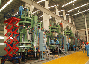 轮胎定型硫化机是汽车外胎硫化专有设备,可用于各种普通轮胎和子午线轮胎的硫化。机器具备从装胎、合膜、卸胎及后充气的全过程自动化生产能力,亦可实现手动操作。结合日本神钢新技术生产的硫化机,结构先进,质量可靠。电气采用PLC控制,可靠度高,维修、更换硫化规格方便。